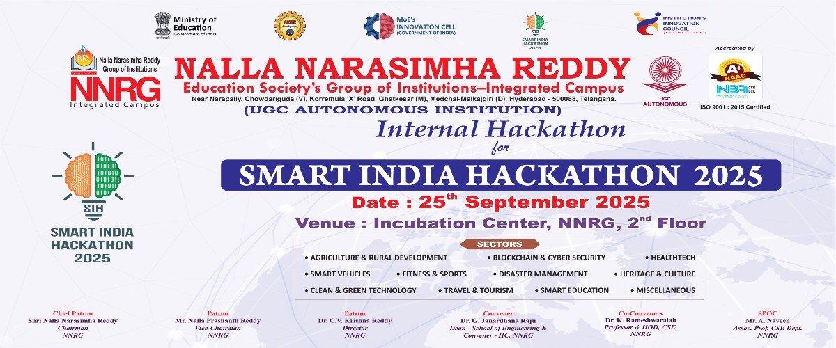 Accordingly, an Integrated Contiguous Campus with multi disciplinary Technical, Engineering, Pharmacy and Management programs under the banner of Nalla Narasimha Reddy Education Society’s (NNRG) Group of Institutions is started.