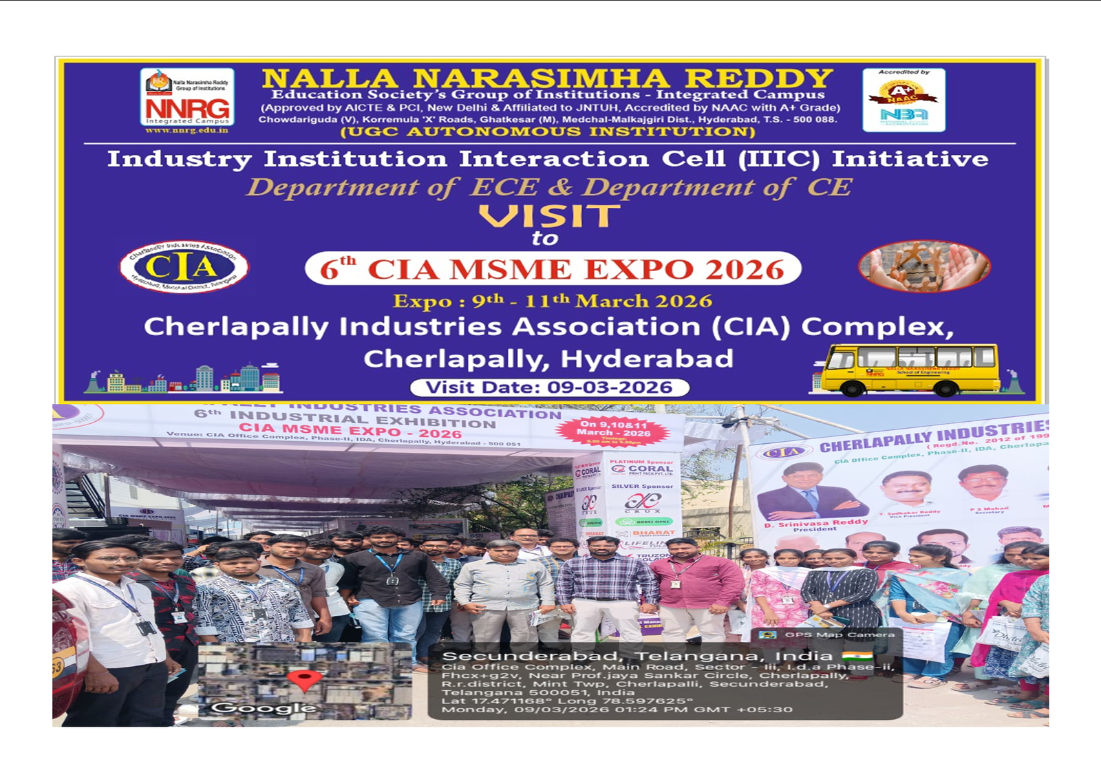 | 1 | 09-03-2026 | Cherlapally Industries Association (CIA) Complex, Cherlapally, Hyderabad | VISIT TO CIA MSME EXPO 2026 (6th Industrial Exhibition - 9th, 10th & 11th March, 2026) | ![]() |