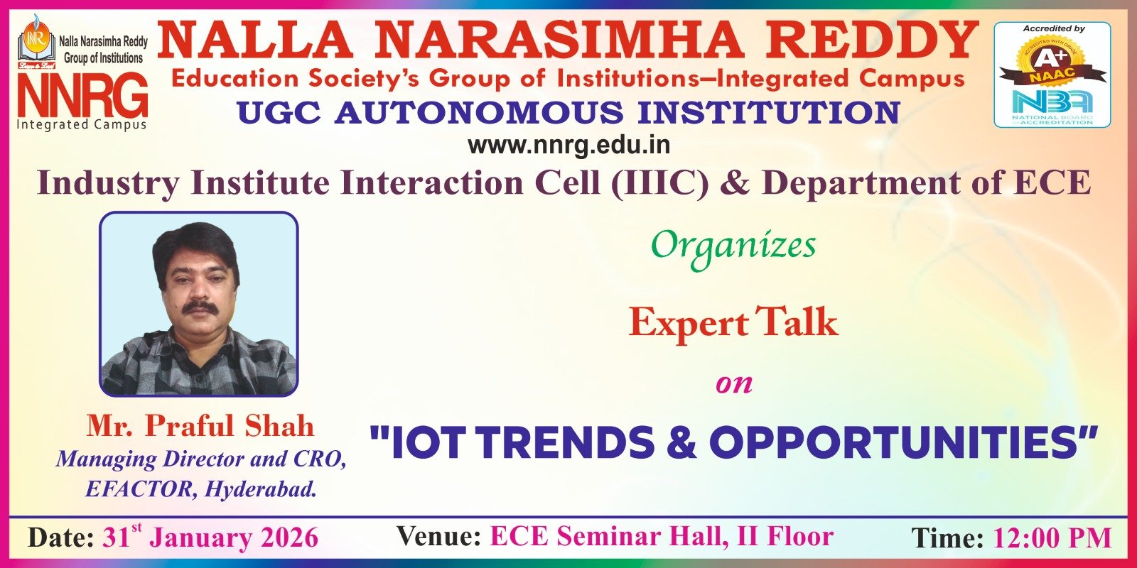 | 2 | 31-01-2026 | Mr.Praful Shah, Managing Director &CRO, E-FACTOR, Hyderabad | IoT Trends & Opportunities | ![]() |