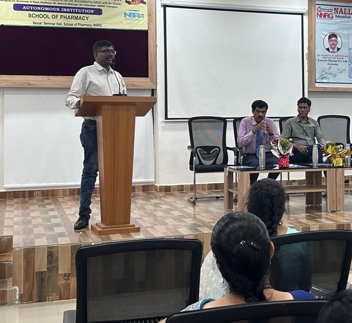 6 | 25.09.2024 | Dr Krishna Murthy Bavasani,Dr Pavan Kumar, Mr. P. Ashwajith | World Pharmacist Day celebration | CEO at Extrovis, Hyderabad and Vice President at Dr Reddy's Laboratories, Hyderabad,NNRG alumnus Pharmacist | ![]() |
