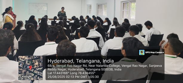 1 | 20.11.2024 | Orientation Programme for students of B.Pharm I year | Dr. C.V. Krishna Reddy and Mr. Nalla Prashant Reddy | Director, NNRG and Vice Chairman, NNRG | ![]() |