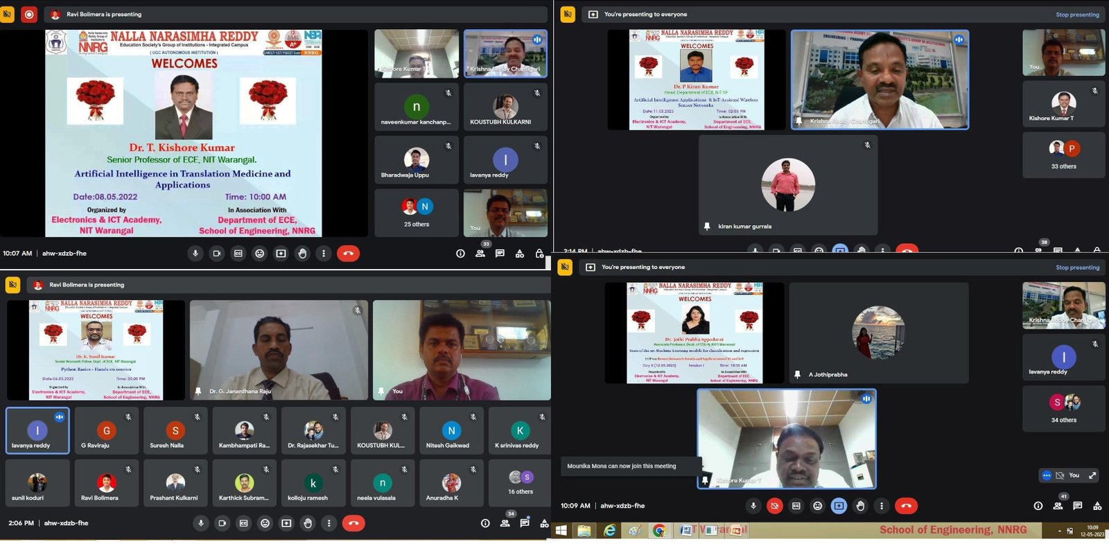 | 1 | 11th – 16th December, 2023 | Artificial Intelligence and Internet of Things for Building Signal Processing Applications | ECE Dept. (AICTE-ATAL sponsored), NNRESGI, Hyderabad |